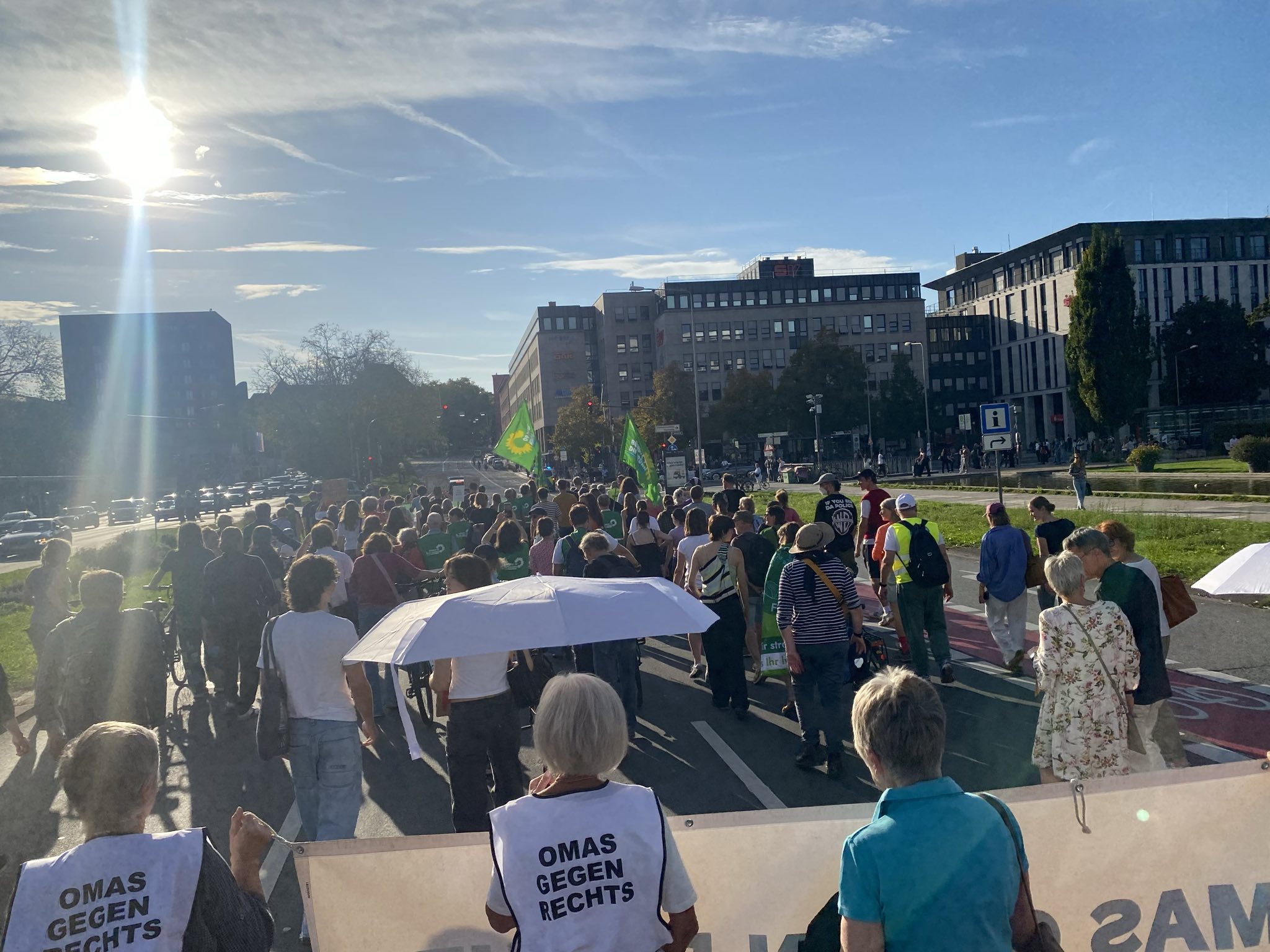 Die OMAs GEGEN RECHTS unterstützen die Forderung von Fridays for Future an die Politik , die im Pariser Klimaschutzabkommen festgehaltenen Versprechen einzuhalten und Klimaschutz und globale Gerechtigkeit für alle zu gewährleisten und waren mit ca. 15 Personen bei der Demo dabei.