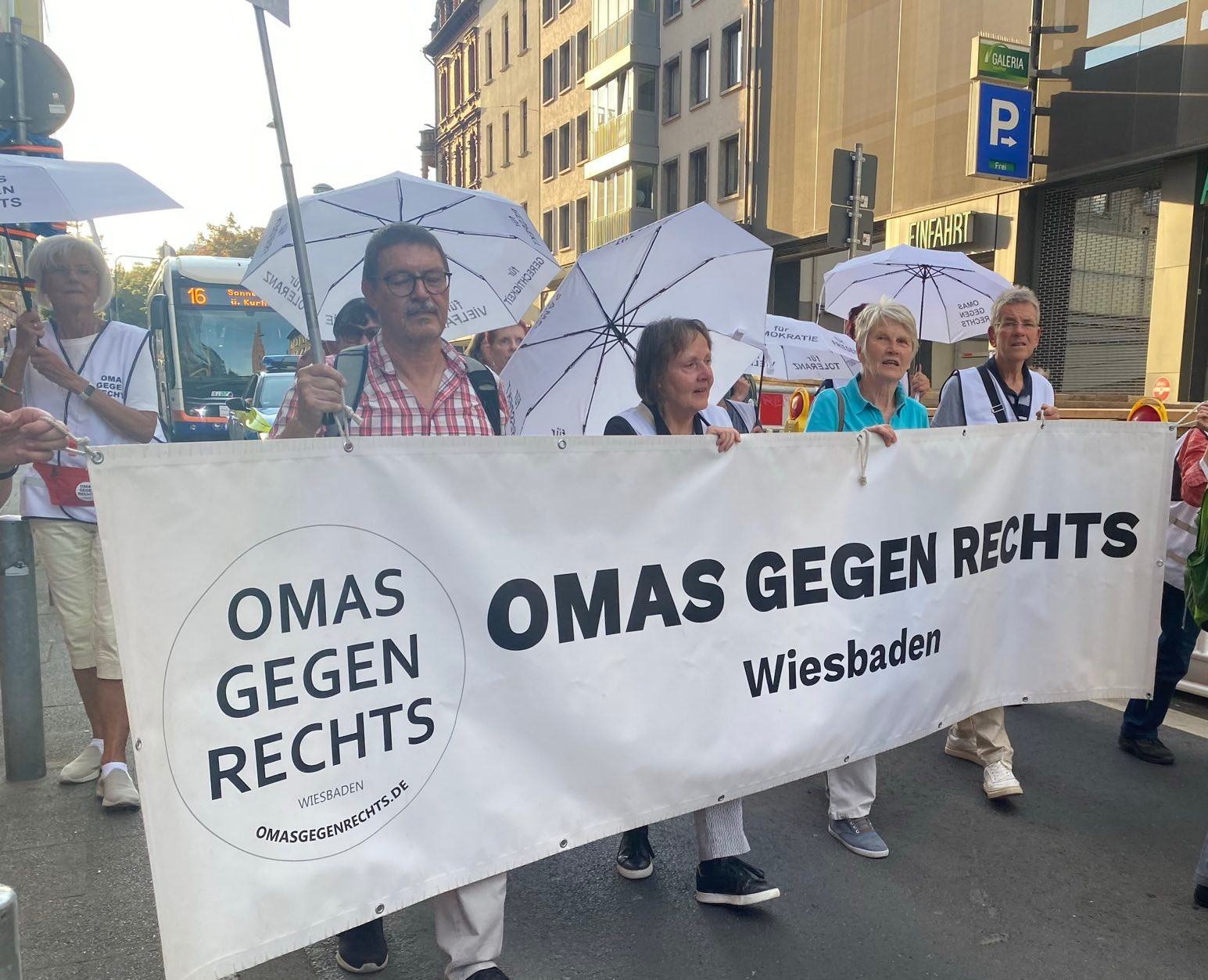 Im Rahmen des Landtags-Wahlkampfes in Hessen treten die Wiesbadener OMAS GEGEN RECHTS mit Infotischen und einer ‚Brandmauer gegen die AfD‘ für Demokratie und Rechtstaatlichkeit ein. Mit zahlreichen Hintergrund-Informationen fordern sie die Bürgerinnen und Bürger auf, zur Wahl zu gehen und ihr Votum für eine Partei aus dem breiten demokratischen Spektrum in Deutschland abzugeben, soweit diese auf dem Boden unseres Grundgesetzes und unserer Werte fest verankert ist sowie die Würde des Menschen als höchstes Gut betrachtet. Die OMAS GEGEN RECHTS warnen zugleich vor Antidemokraten, faschistoiden Kräften, völkisch-nationalistischen Parteien und solchen, die vom Verfassungsschutz nicht ohne Grund beobachtet werden.